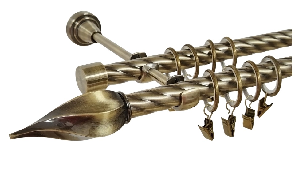 Galerie dubla twister fara inele prindere tavan 19/19 mm negru aur antic