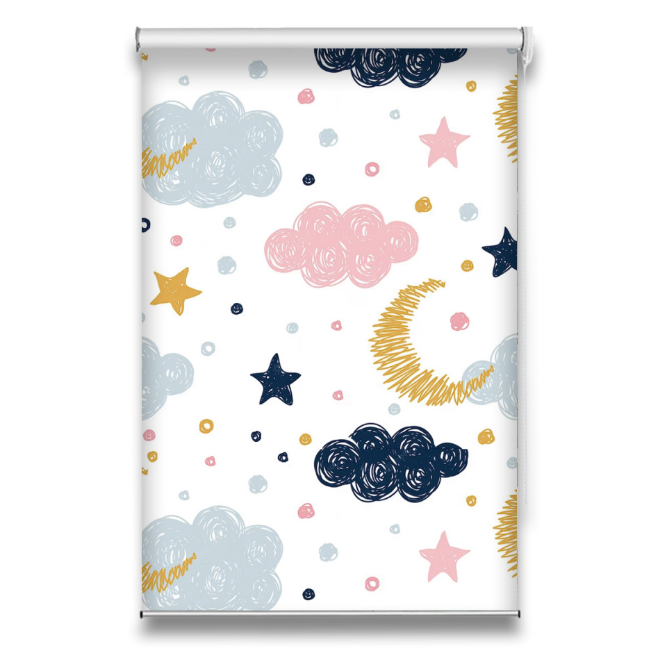 Roletă textilă Kids 7022 cu nori, stele și lună