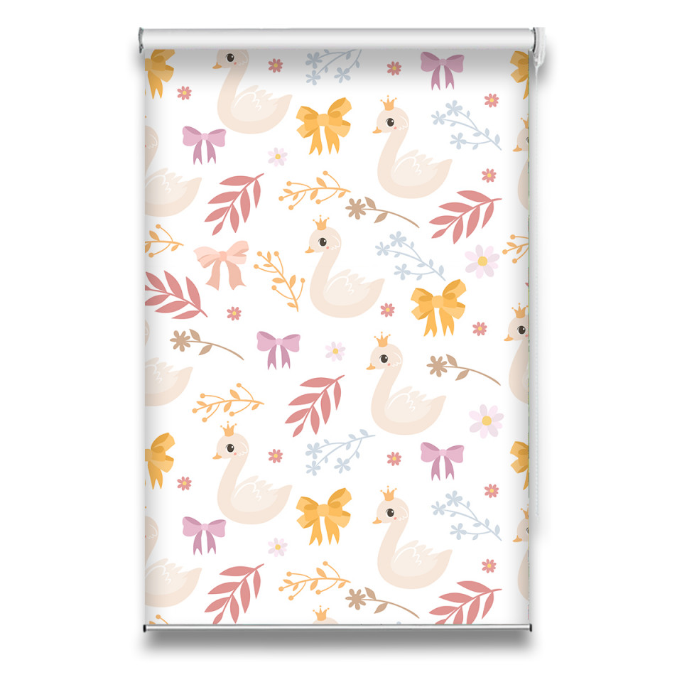 Roletă textilă Kids 7025 cu lebede și fundițe