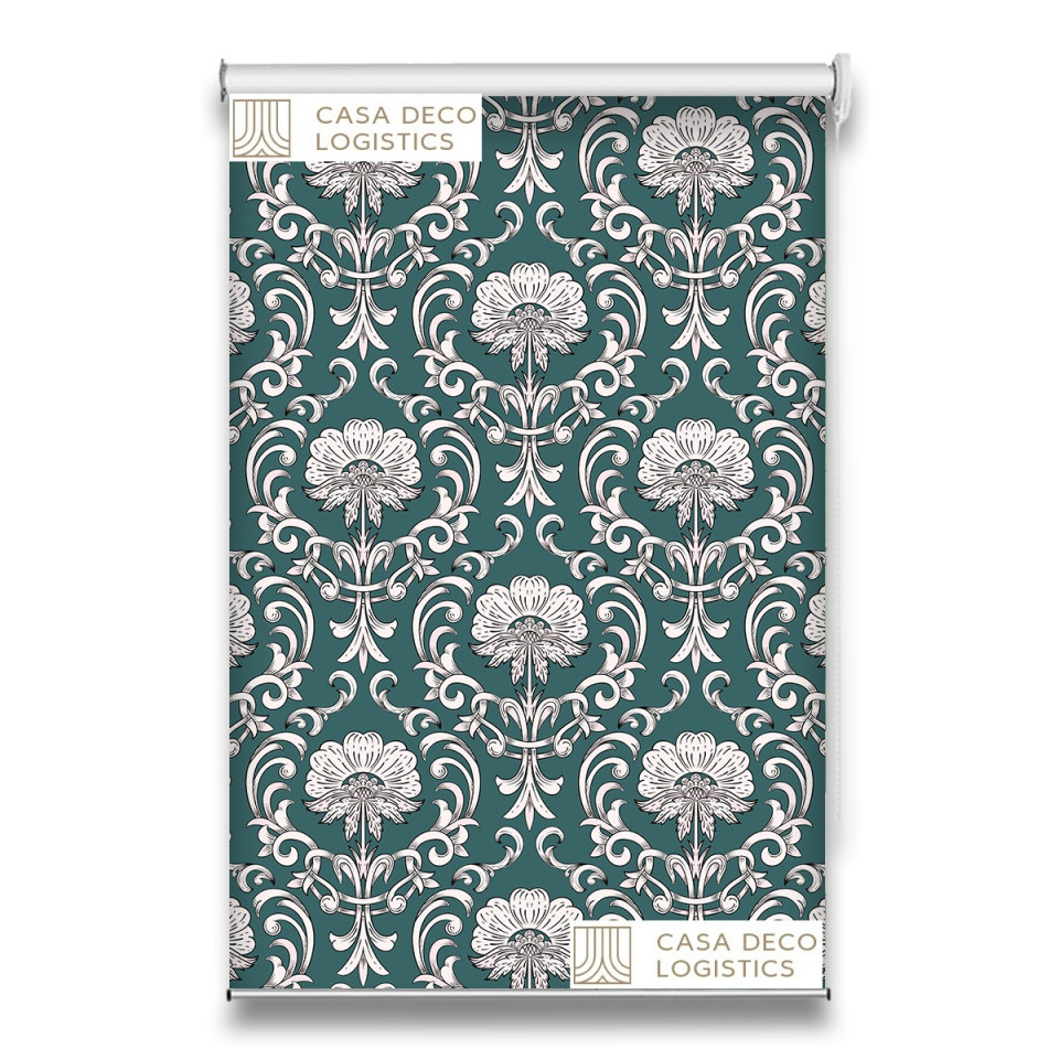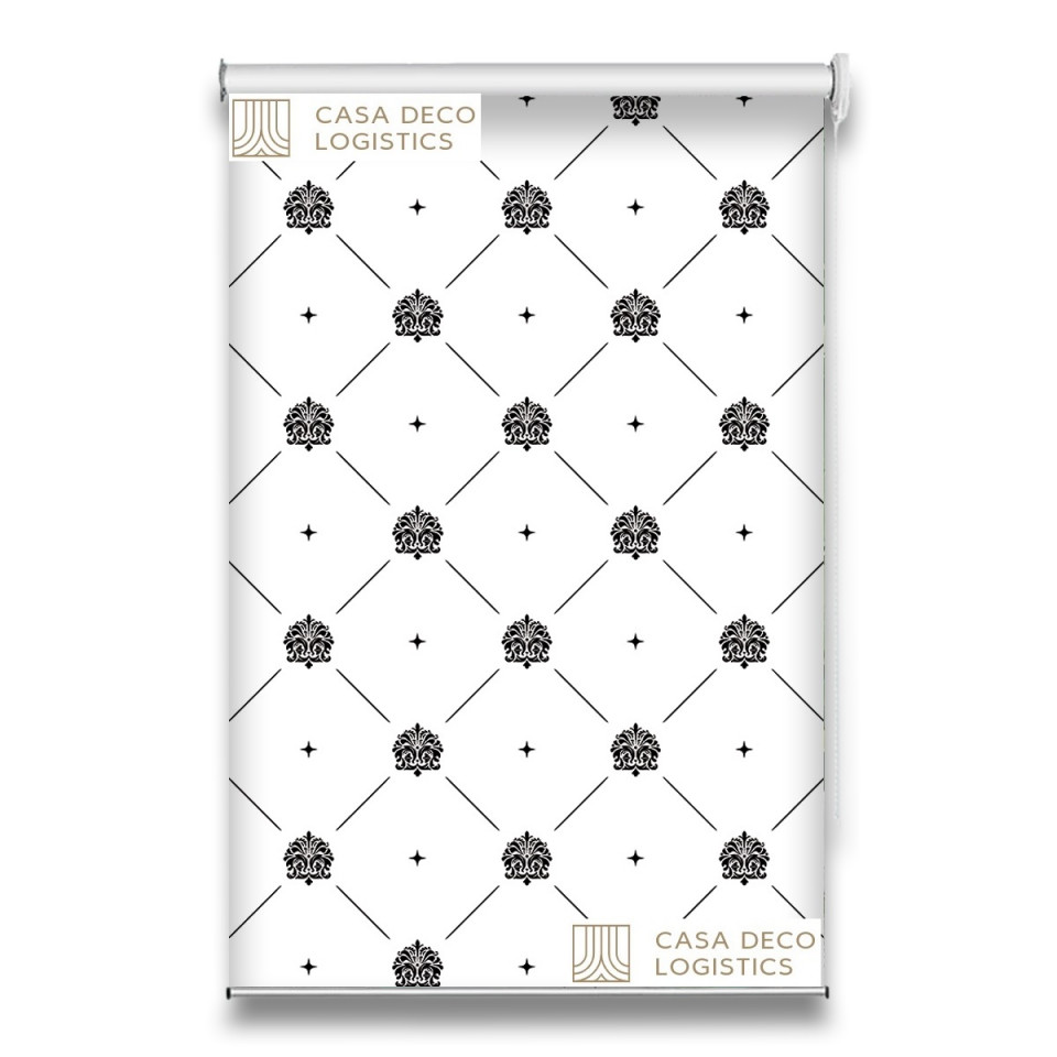 Roletă textilă Royal 5015 alb-negru cu model ornamental baroque