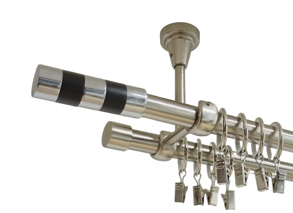 Galerie dubla valeo negru fara inele prindere tavan 19/19 mm inox