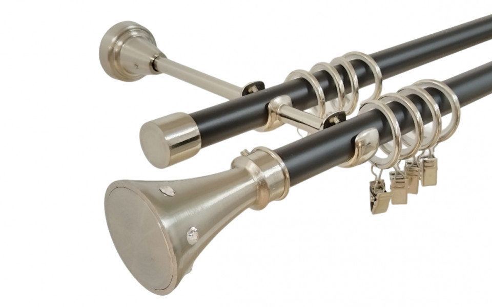 Galerie dubla duo cilindru negru 19 mm negru inox