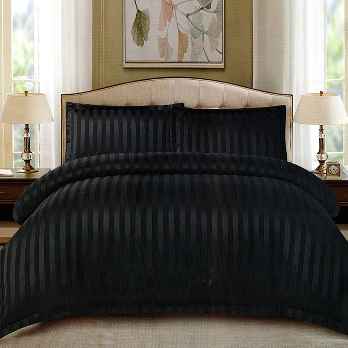 Lenjerie Damasc Stripe Negru cu elastic 4 Piese (Finet)