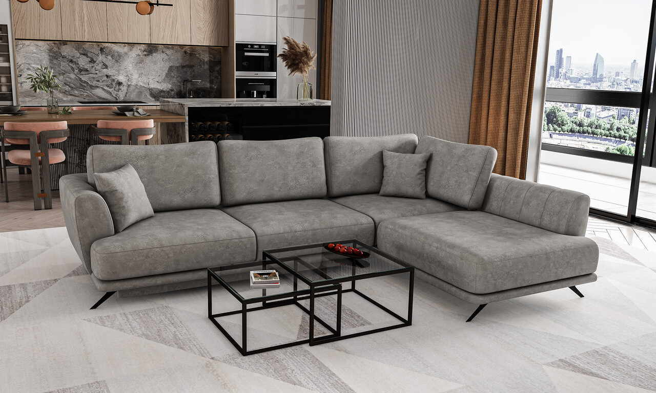 Coltar extensibil dreapta 4 locuri ELTAP, RT-04LE, Larde, 286x191x90 cm, lemn/poliester, gri