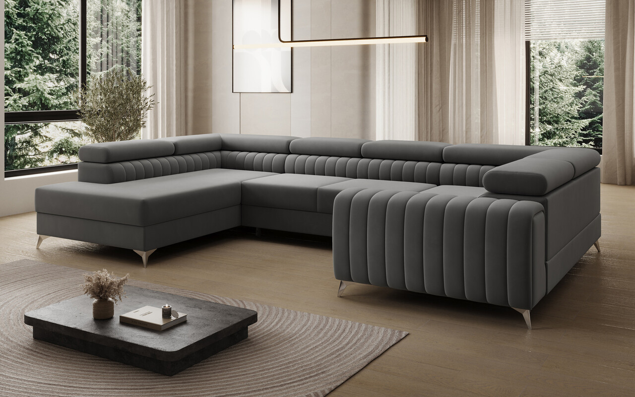 Coltar extensibil stanga 6 locuri ELTAP, LT-06SO, Louis, 347x202x92 cm, lemn/poliester, gri inchis