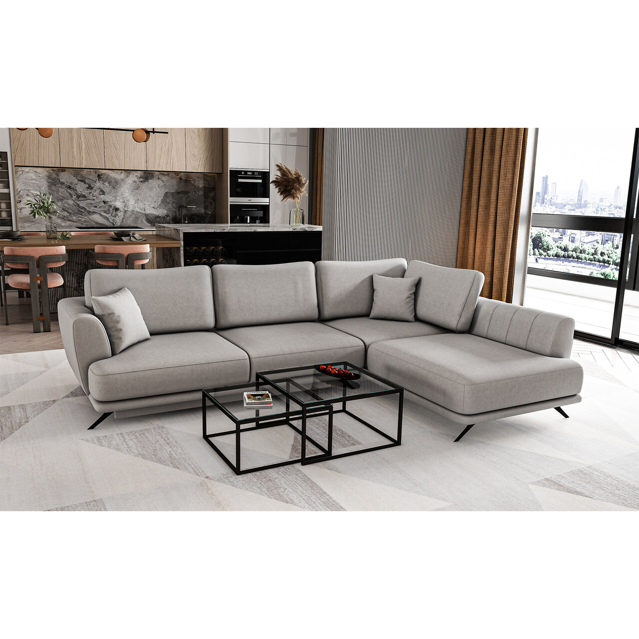 Coltar extensibil dreapta 4 locuri ELTAP, RT-04BO, Larde, 286x191x90 cm, lemn/poliester, gri deschis