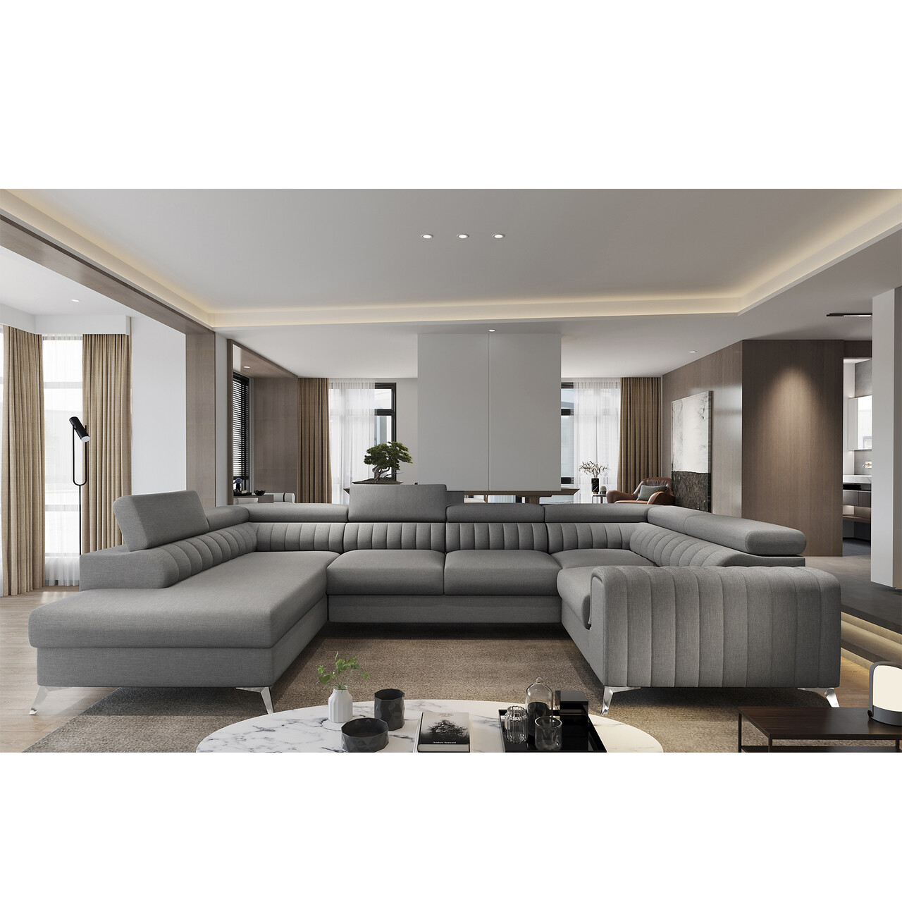 Coltar extensibil stanga 6 locuri ELTAP, LT-04GO, Louis, 347x202x92 cm, lemn/poliester, gri deschis