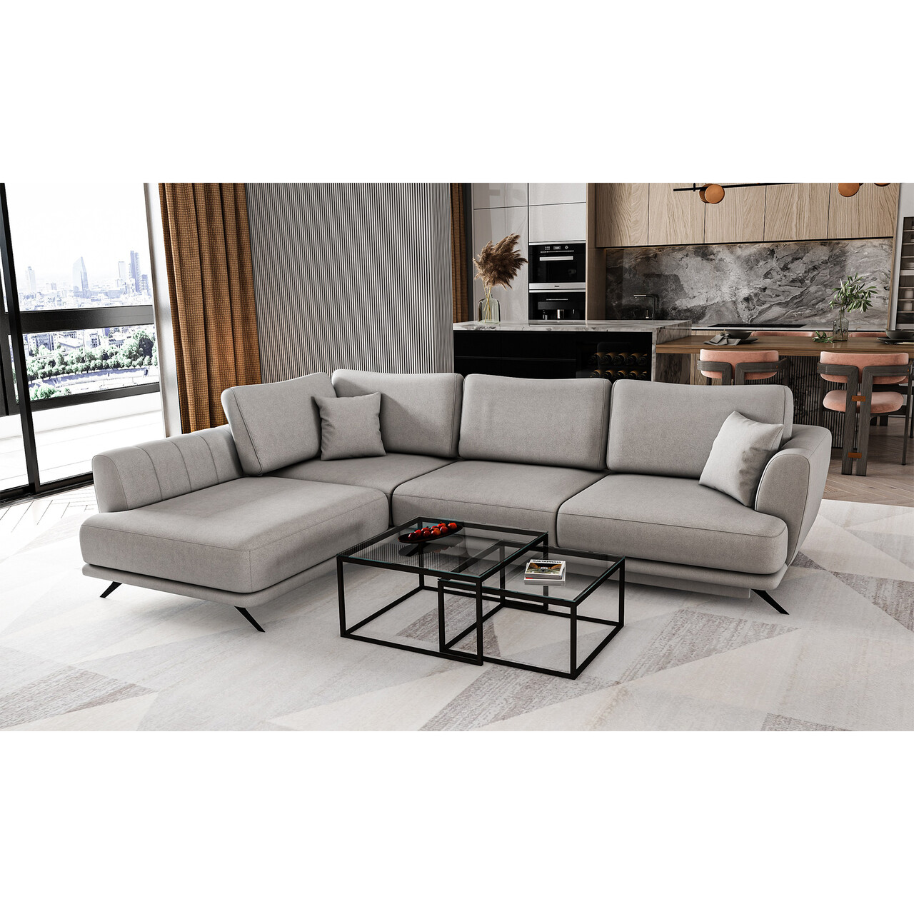 Coltar extensibil stanga 4 locuri ELTAP, LT-04RO, Larde, 286x191x90 cm, lemn/poliester, gri deschis