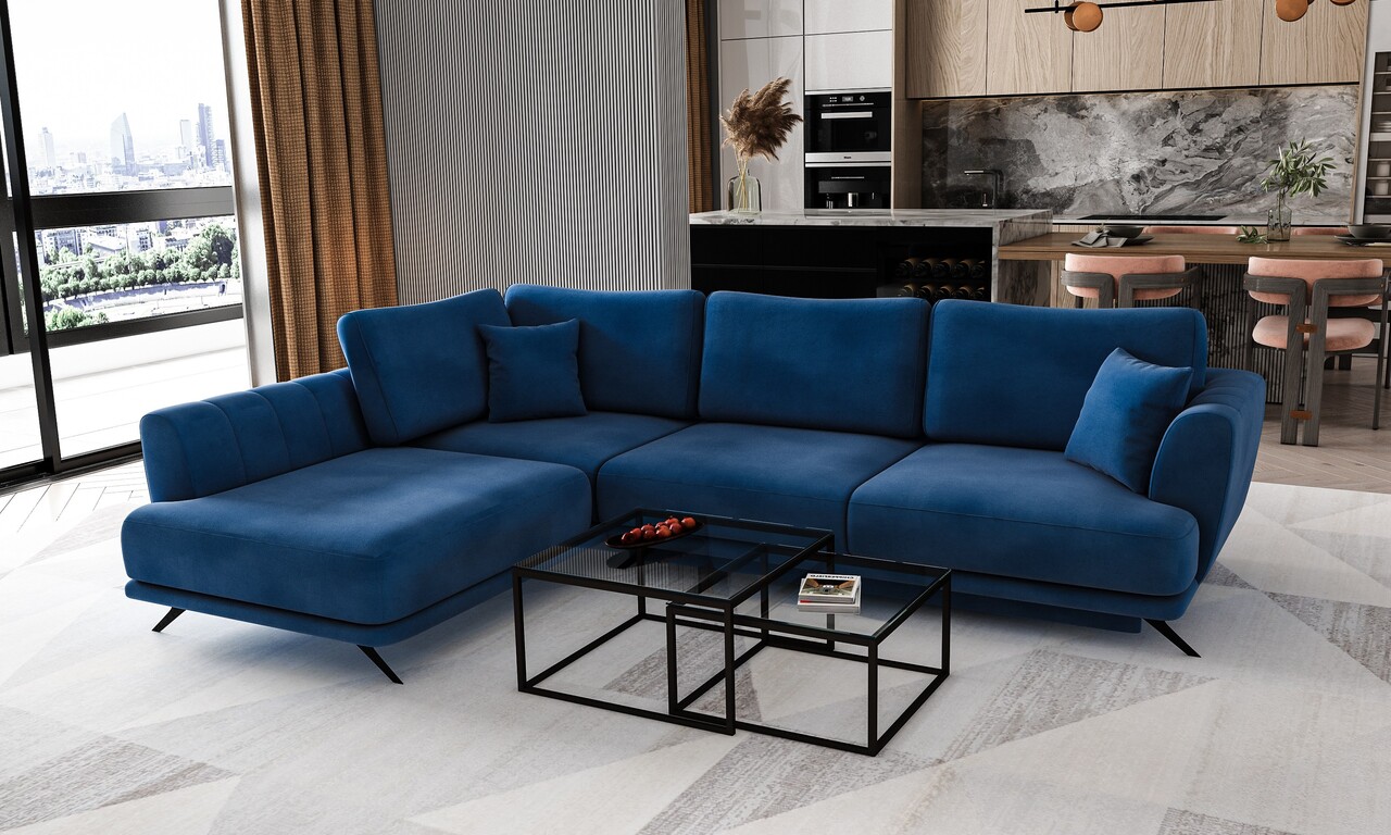 Coltar extensibil stanga 4 locuri ELTAP, LT-40LO, Larde, 286x191x90 cm, lemn/poliester, albastru inchis