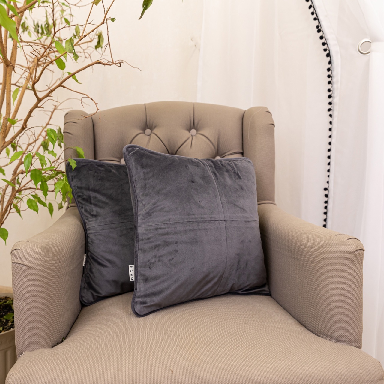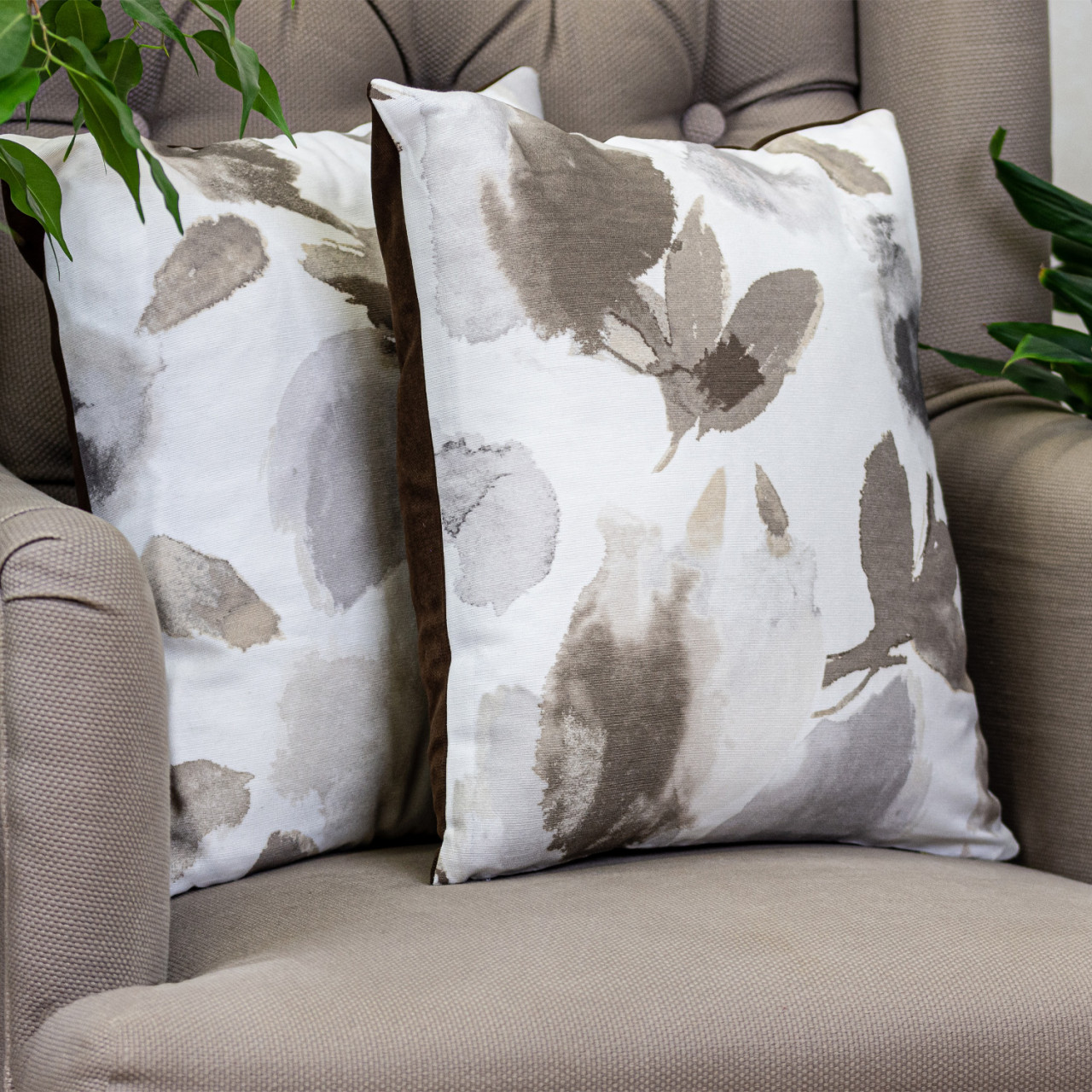 Set doua perne decorative cu fata detasabila, Hiko umbre flori maro 2x40x40cm