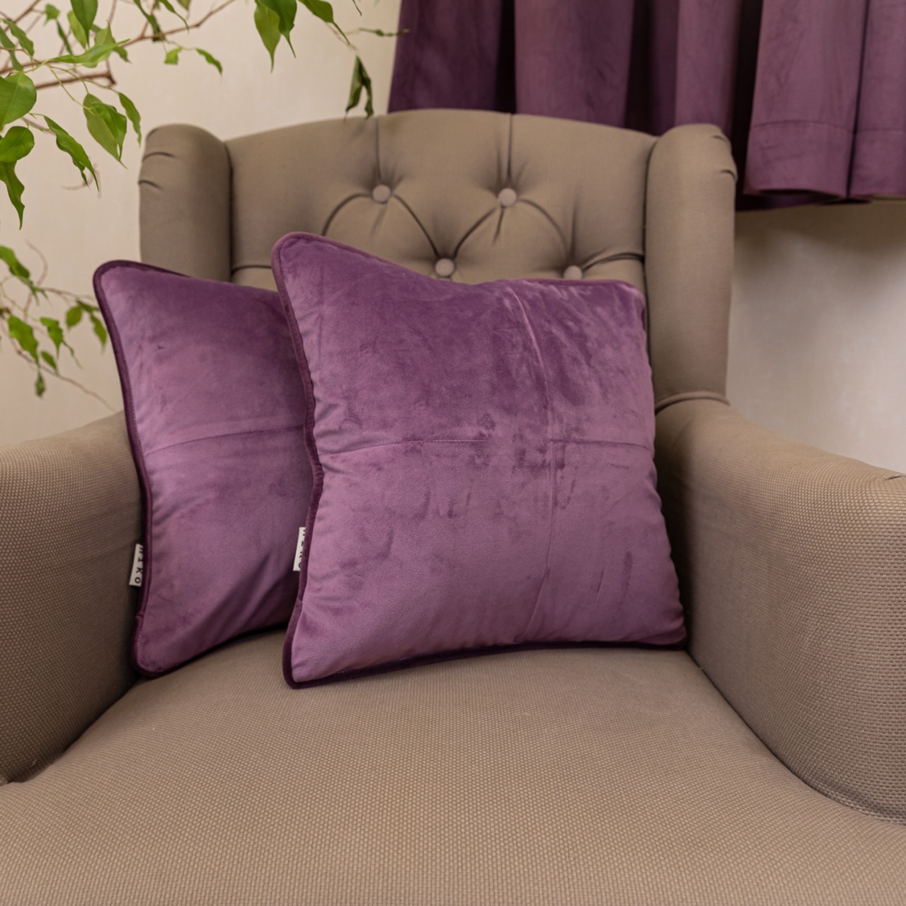 Set 2 draperii Hiko Comfy catifea lavanda ice cream, cu rejansa