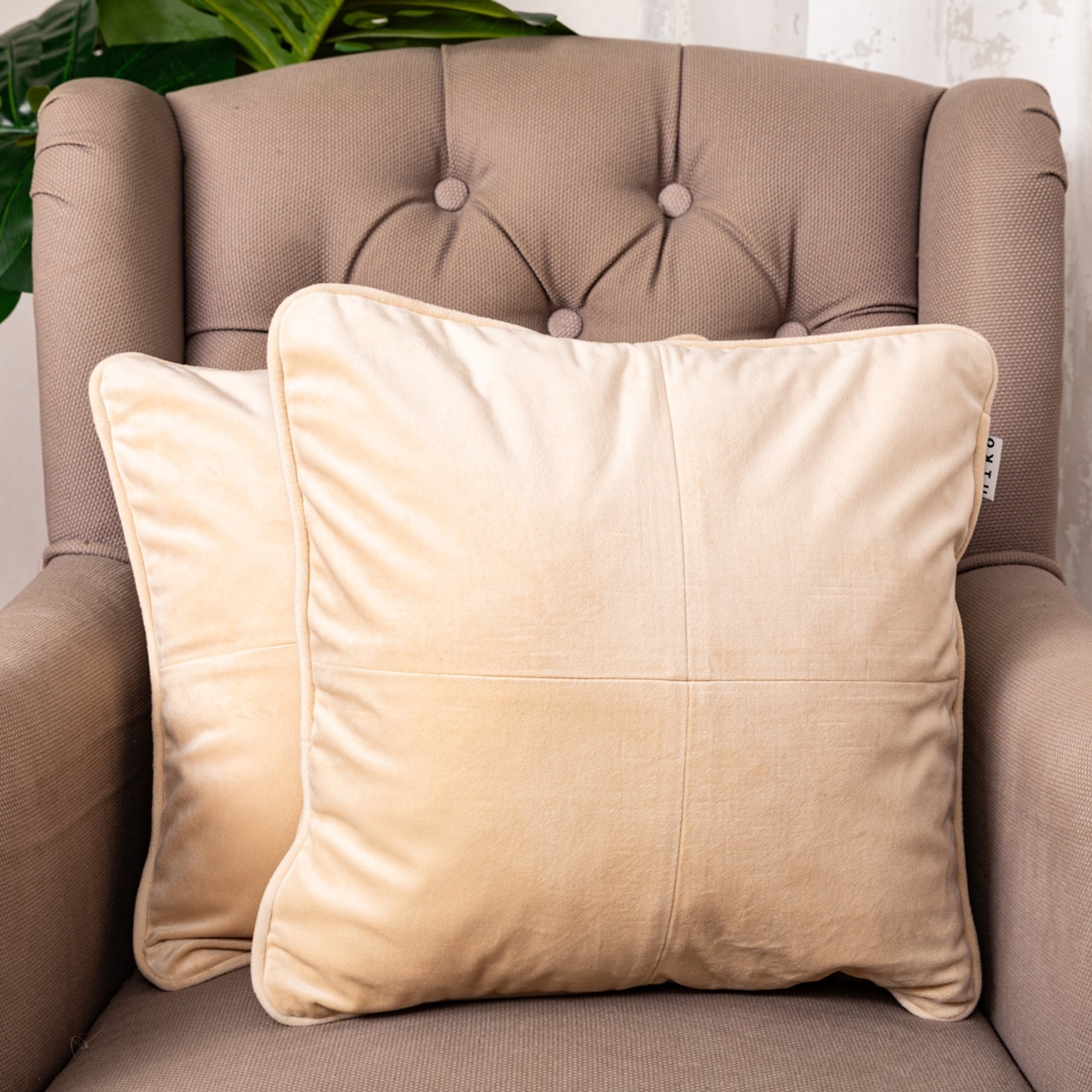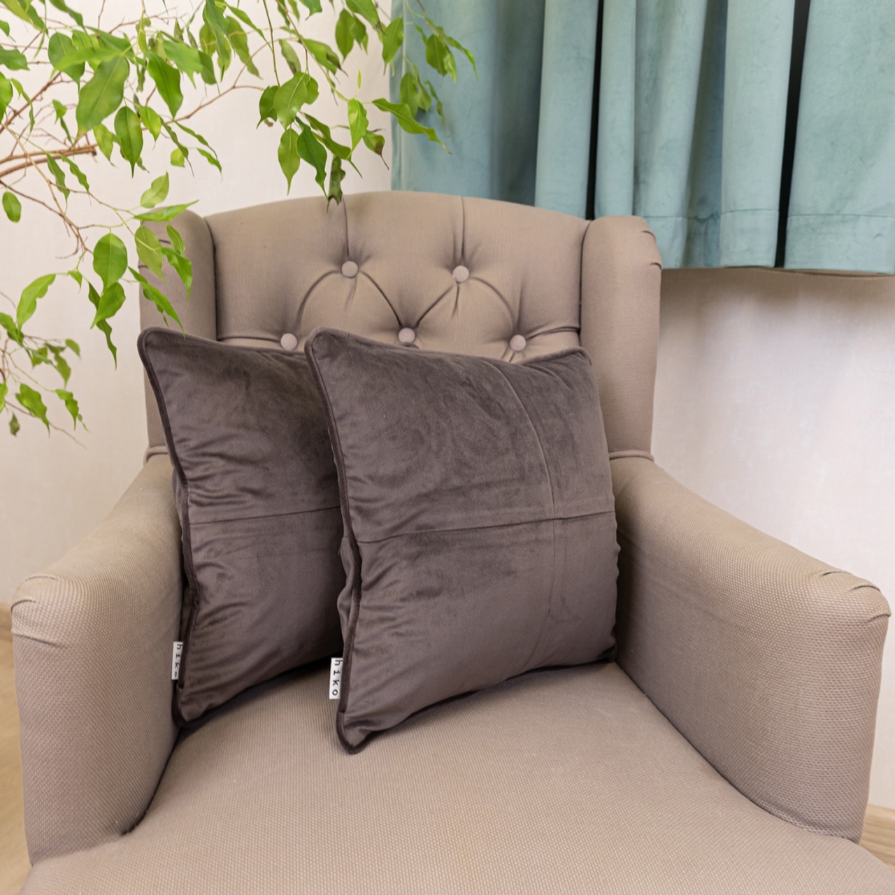 Set doua perne decorative cu fata detasabila, Hiko COMFY catifea verde deschis