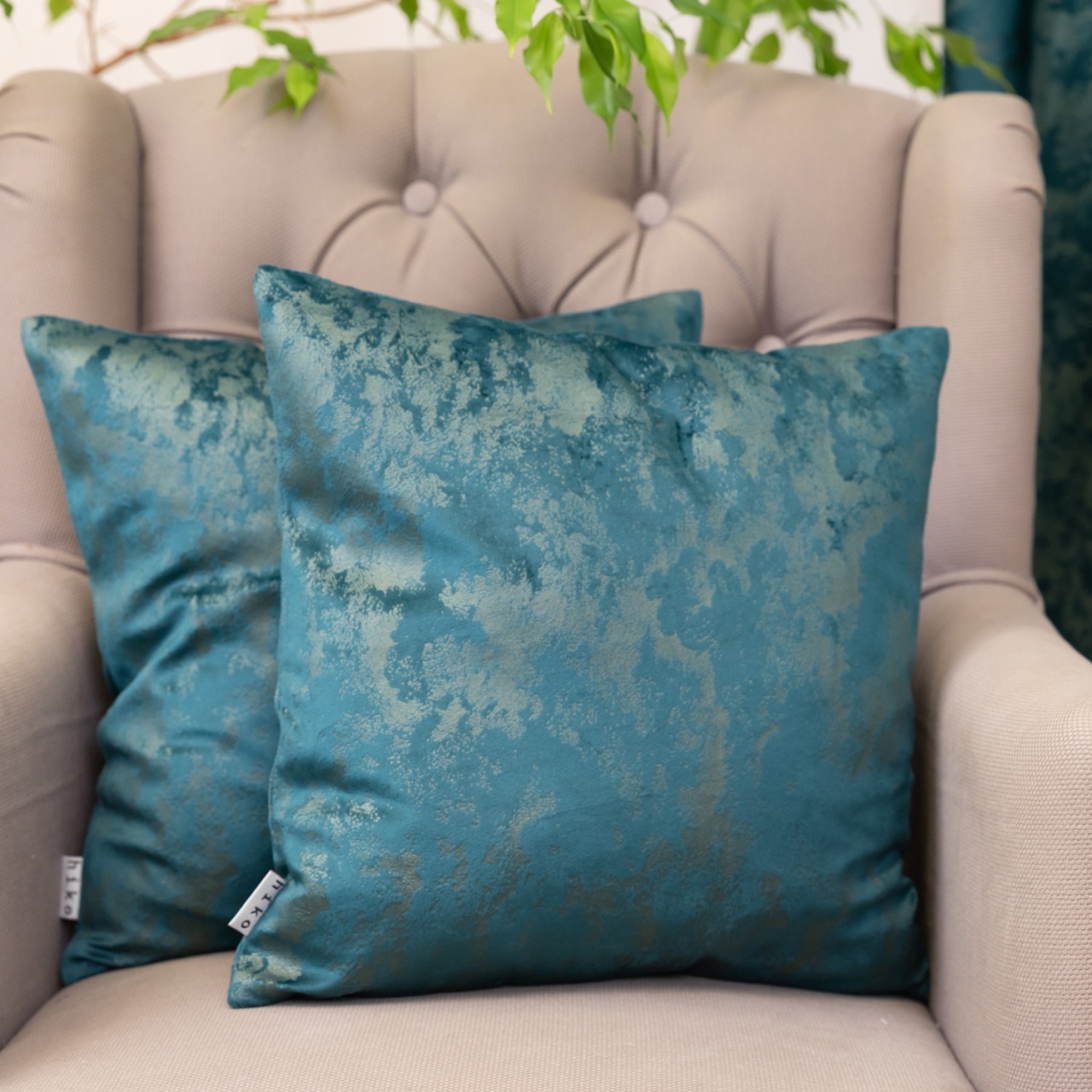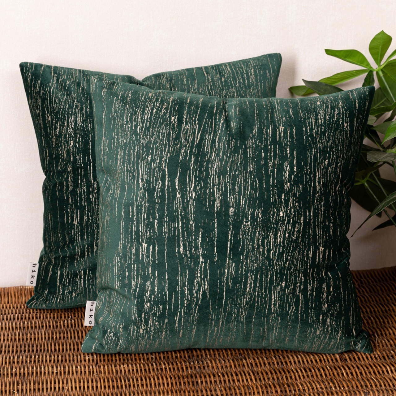 Set doua perne decorative cu fata detasabila, Hiko COMFY IMPERIAL catifea verde smarald 2x40x40cm