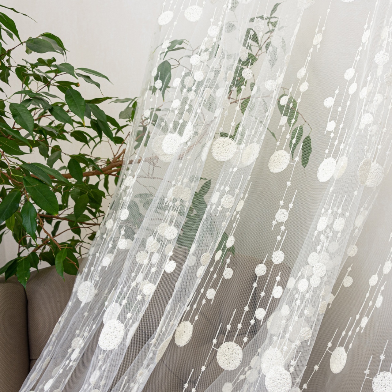 Perdea nesifonabila brodata Hiko Polkadots, cu rejansa