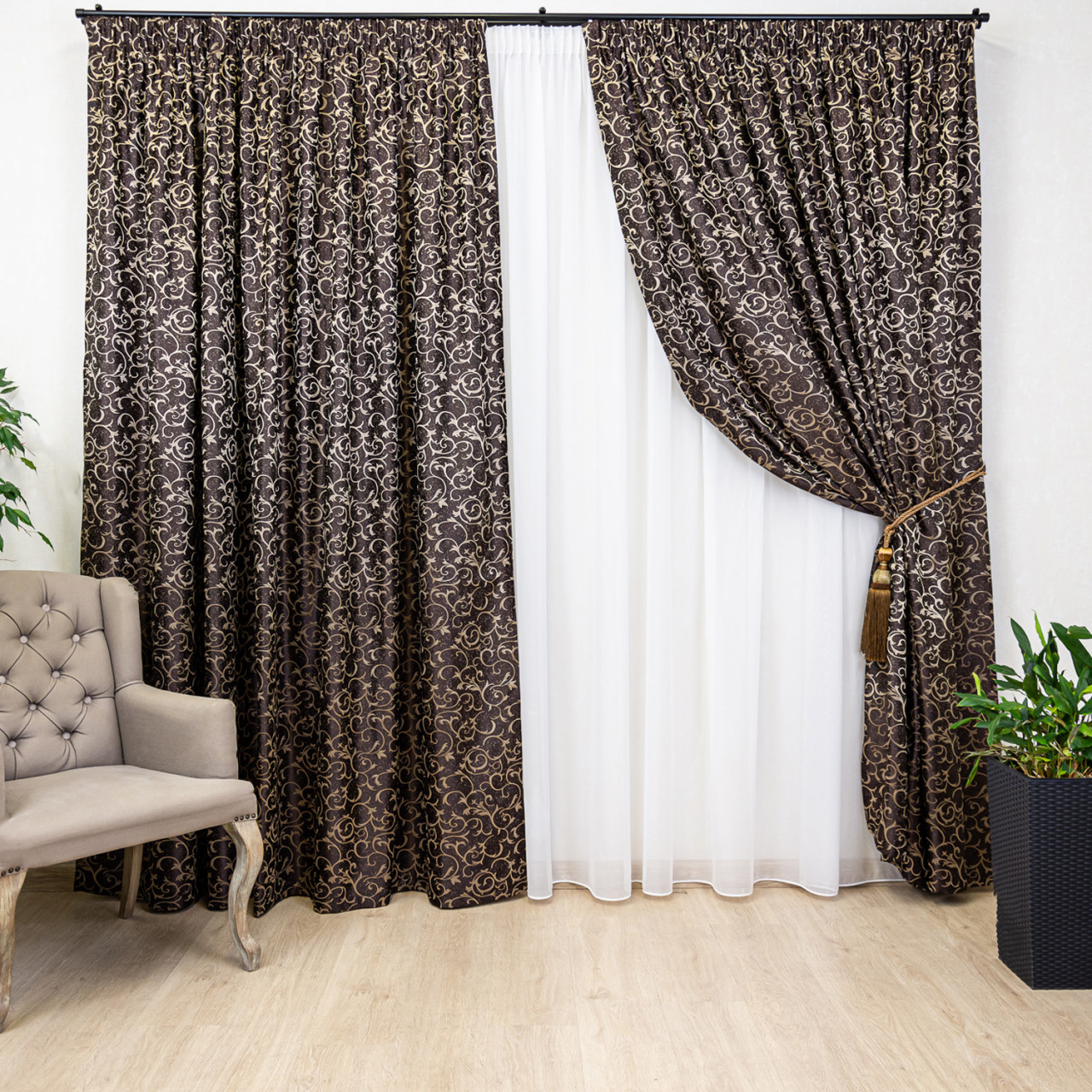 Draperie baroc, Hiko Royal Vivien maro, cu rejansa, 1 bucată