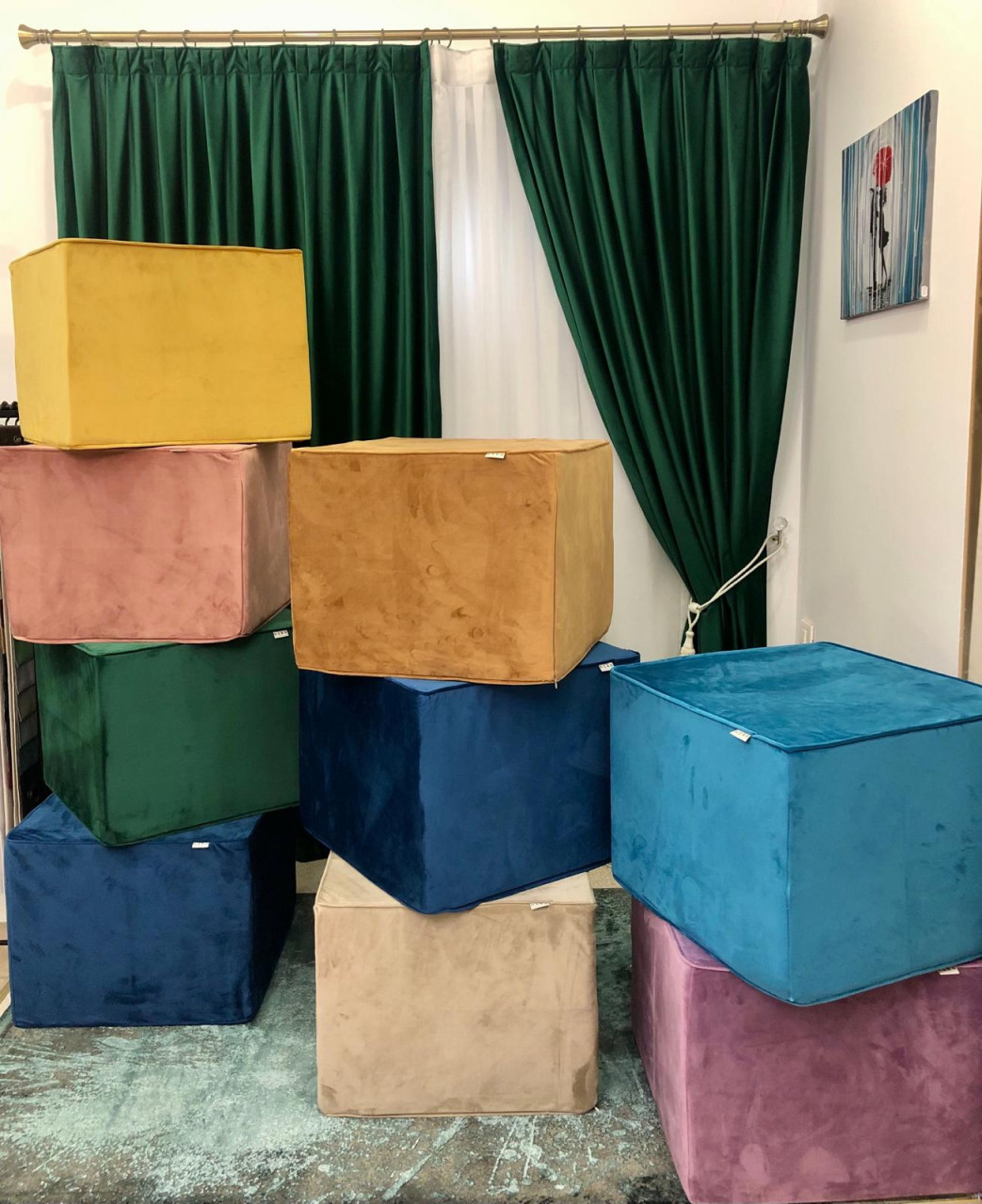 Taburet, otoman din catifea Hiko Comfy culoare LA ALEGERE, burete ferm 50x50cm cu inaltimea de 40cm