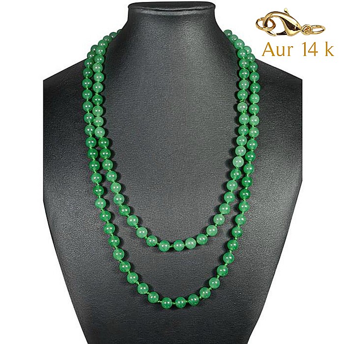 Colier Lung Jad Verde Malaesian de 8 mm cu Inchizatoare de Aur de 14k