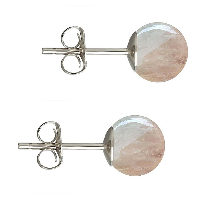 Cercei Argint, Tip Surub, cu Pietre Semipretioase Naturale de Cuart Roz de 8 mm