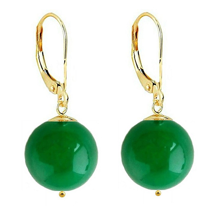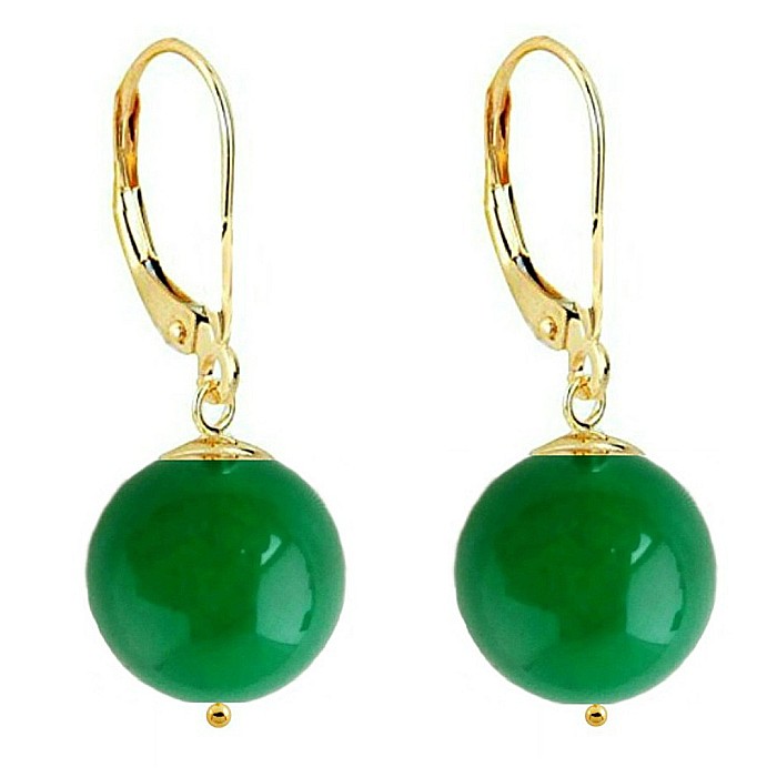 Cercei Aur cu Tortita Inchisa si Jad Natural Malaesian de 12 mm