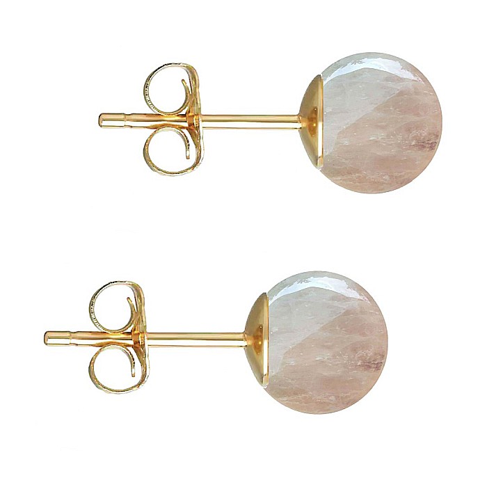 Cercei Aur Galben de 14 karate, Tip Surub, cu Pietre Semipretioase Naturale de Cuart Roz de 8 mm