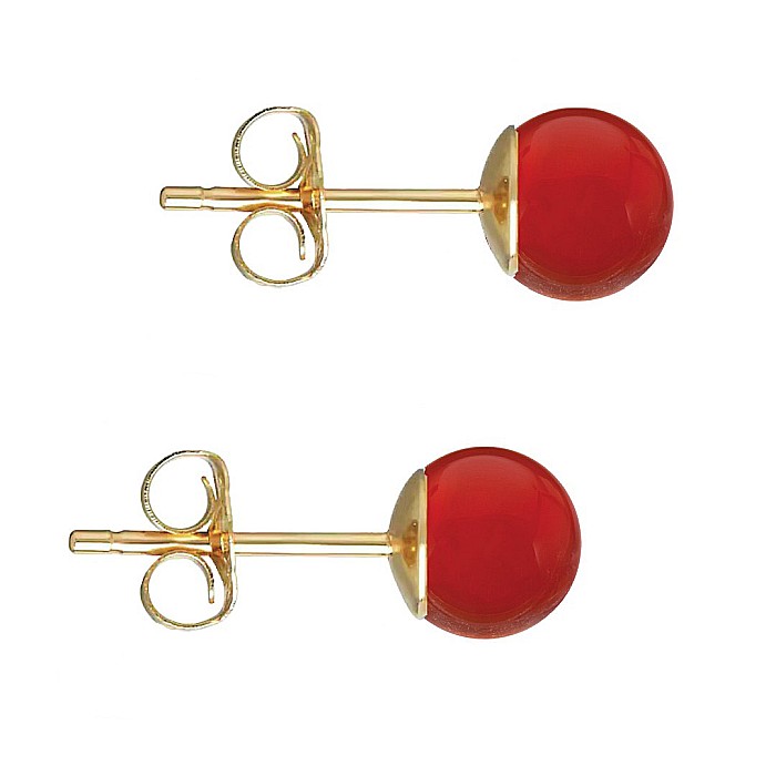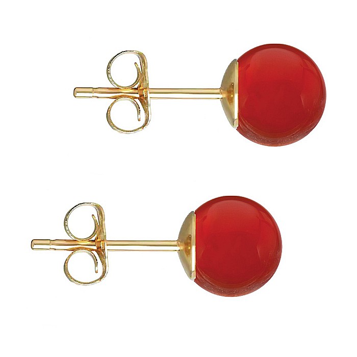Cercei Aur Galben de 14 karate, Tip Surub, cu Pietre Semipretioase Naturale de Carneol de 6 mm