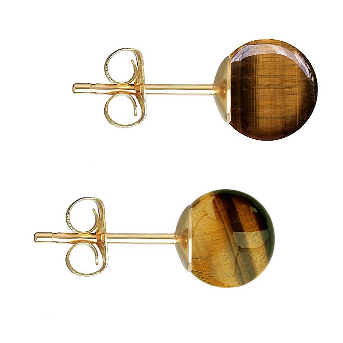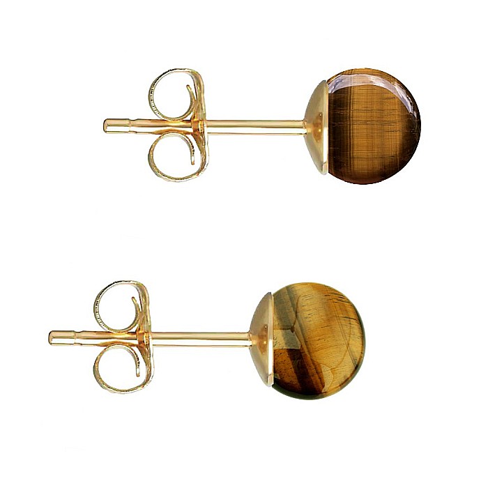 Cercei Aur Galben de 14 karate, Tip Surub, cu Pietre Semipretioase Naturale de Ochi de Tigru de 8 mm
