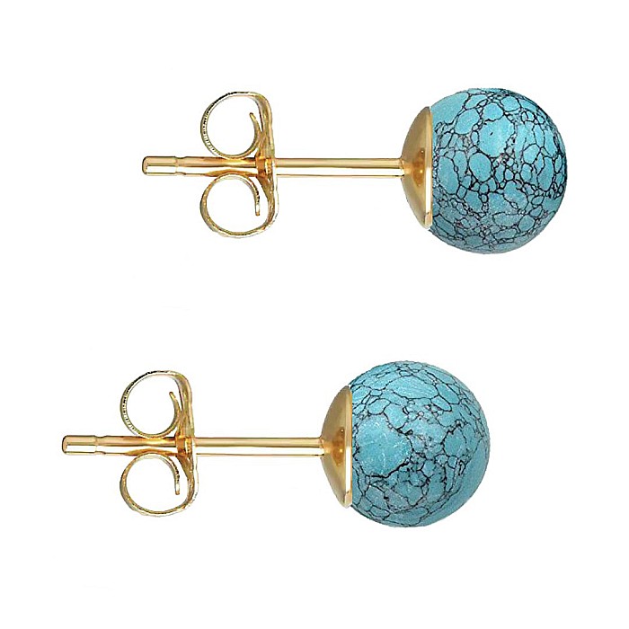 Cercei Aur Galben de 14 karate, Tip Surub, cu Pietre Semipretioase Naturale de Howlit de 6 mm