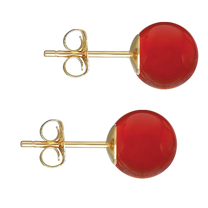 Cercei Aur Galben de 14 karate, Tip Surub, cu Pietre Semipretioase Naturale de Carneol de 8 mm