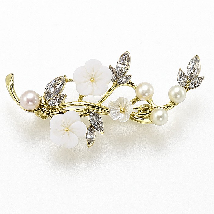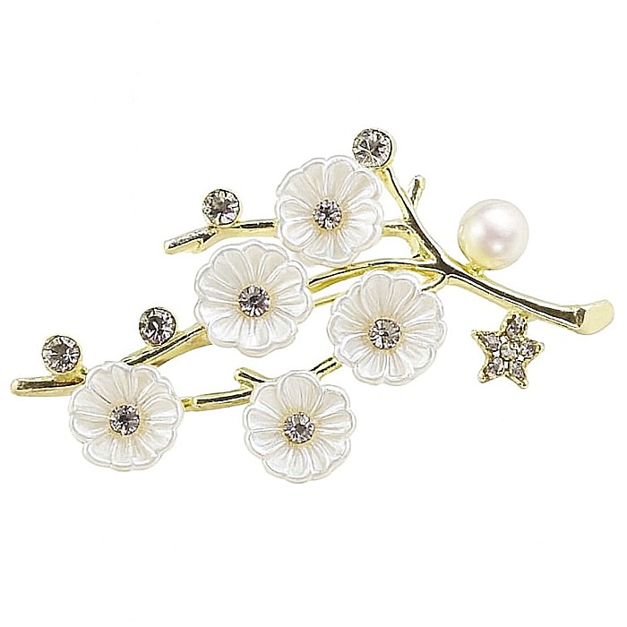 Brosa Buchet de Flori cu Perle Naturale Albe