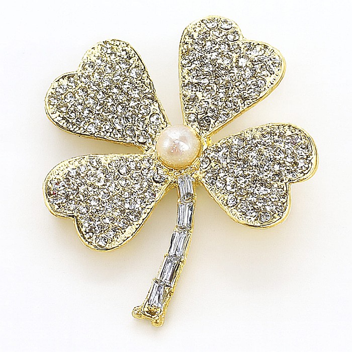 Brosa Trandafir Auriu cu Perla Naturala Alba