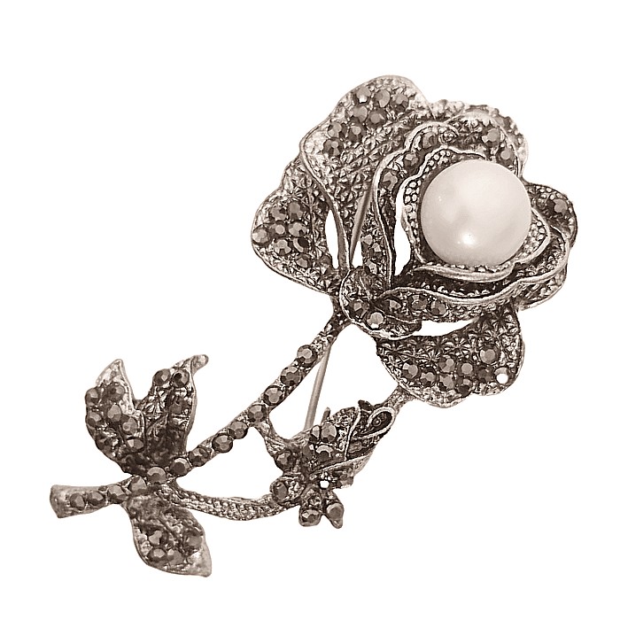 Brosa Trandafir Argintiu cu Perla Naturala Alba