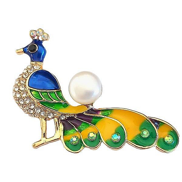 Brosa Blue Accents cu Perla Naturala Alba Mare, de 9-10 mm