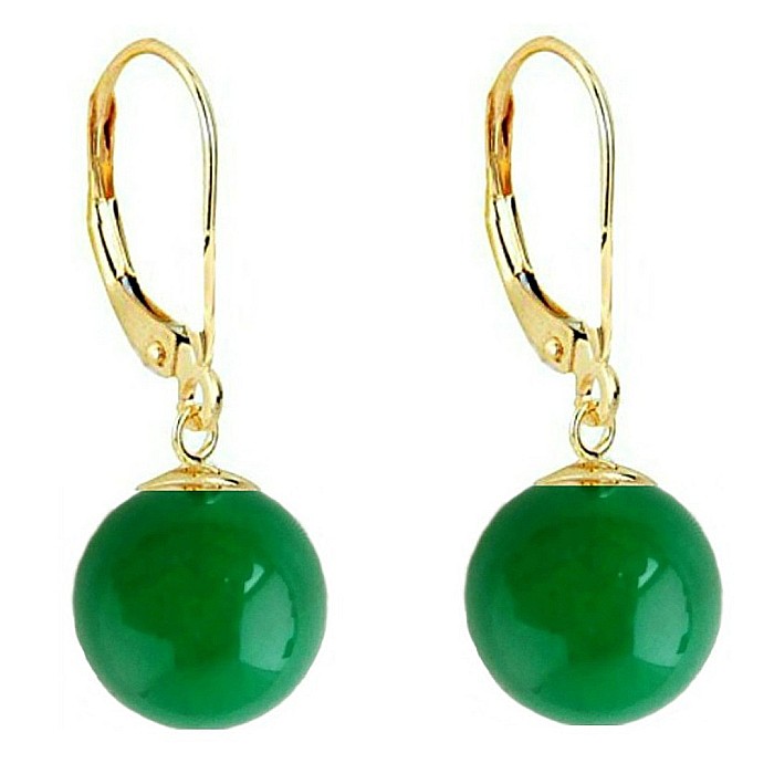 Cercei Aur cu Tortita Inchisa si Jad Natural Malaesian de 8 mm