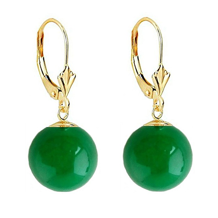 Cercei Aur Galben Model Lalea cu Jad Malaesian de 8 mm