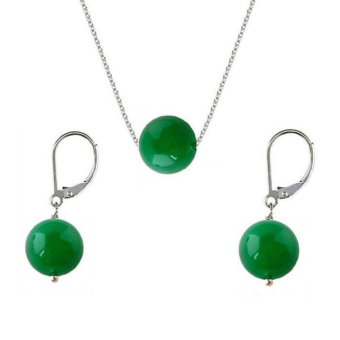 Set Argint cu Jad Natural Malaesian de 10 mm