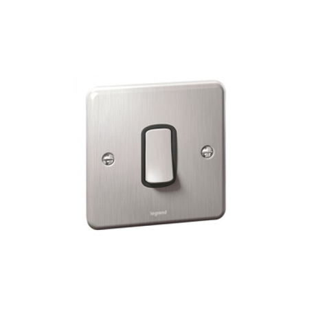 Plate switch Synergy -1 module -1 way -10 AX -250 V~ - Authentic brushed stainless steel