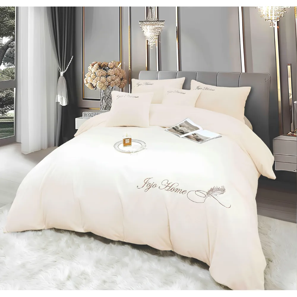 Lenjerie de Pat Brodate , Cearceaf cu Elastic, 6 Piese, Blană de Iepure Artificială cu Fir Scurt, Unt - JOJ633