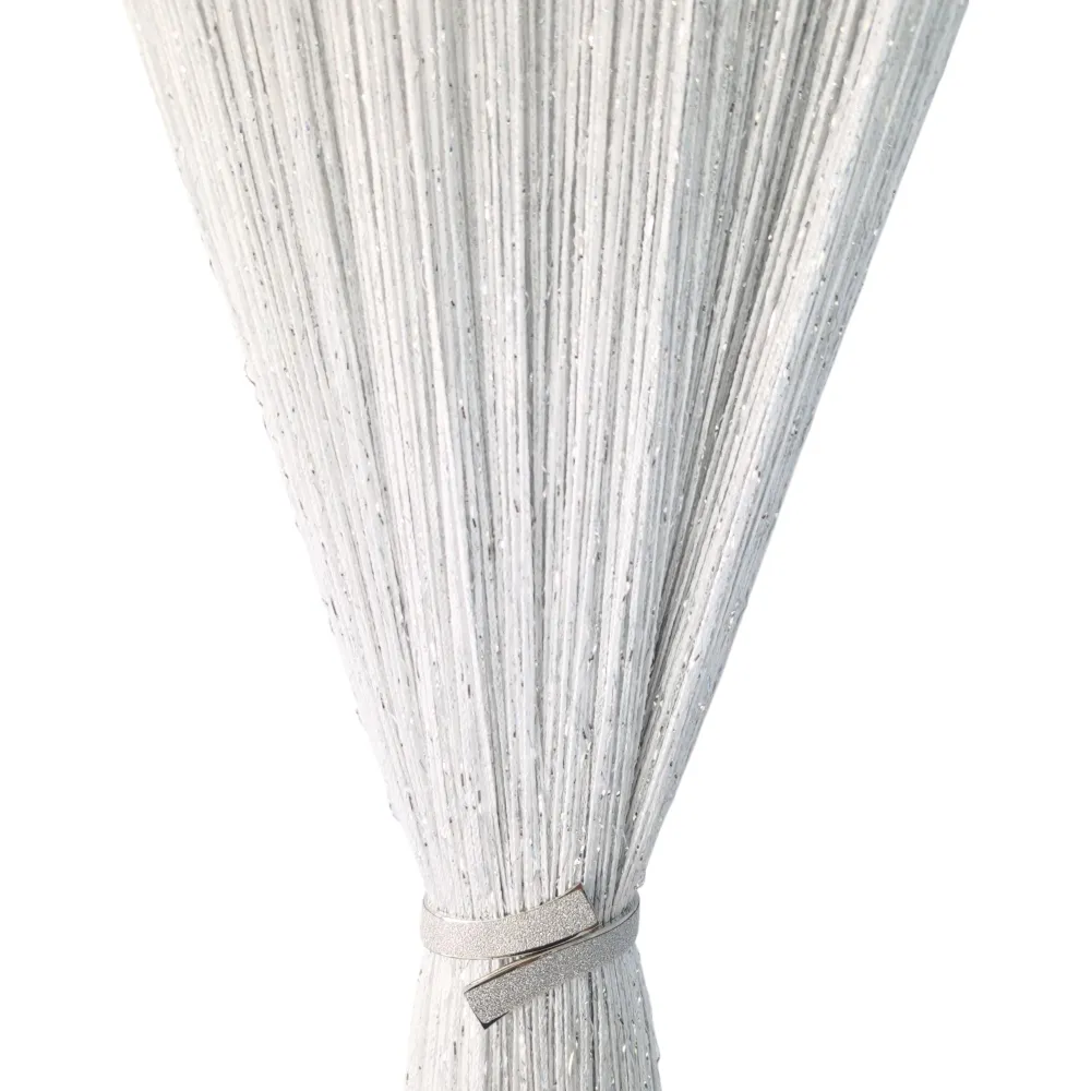 Perdea Decorativa Alba cu Franjuri si Insertii Argintii, 3x3m - COL1