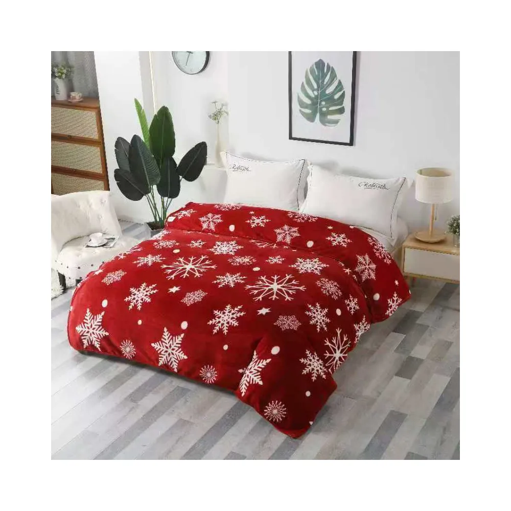 Patura Cocolino Model de Craciun 200x230, Rosie cu Reni si Fulgi de Zapada - SUZ12