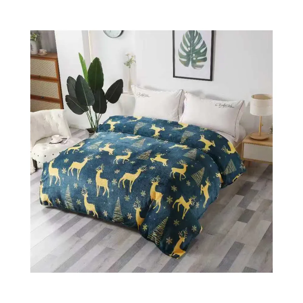 Patura Cocolino Model de Craciun 200x230, Albastra cu Reni - SUZ10