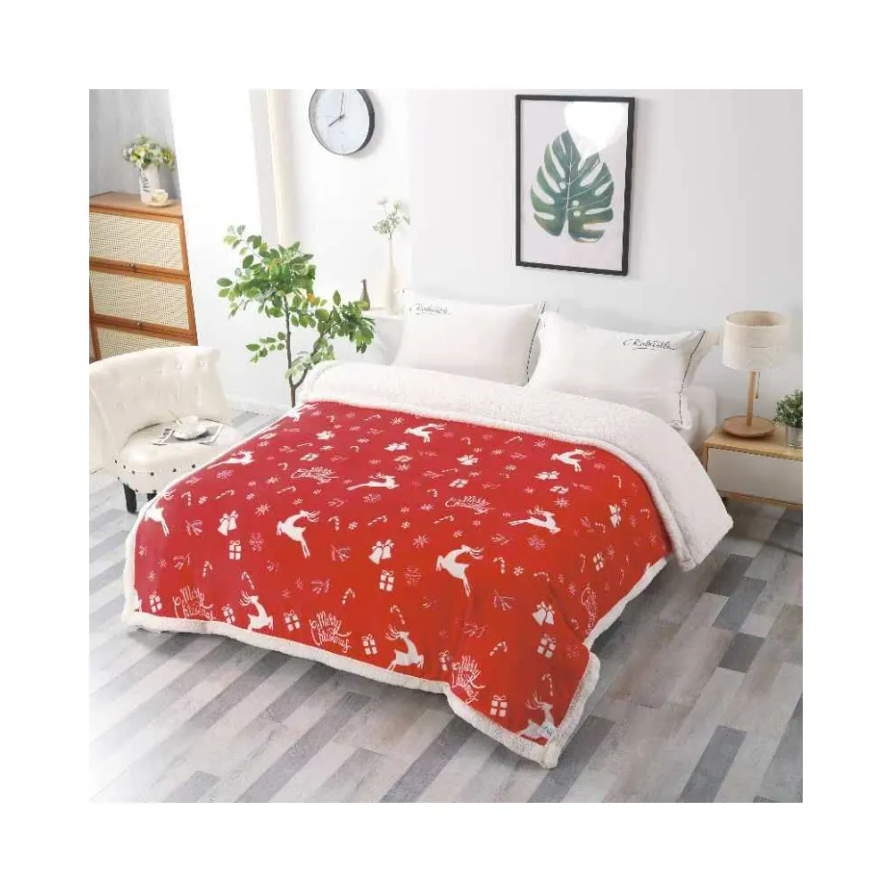 Patura Cocolino cu Blanita, Model de Craciun 200x230, Rosu cu Reni - SUZ24
