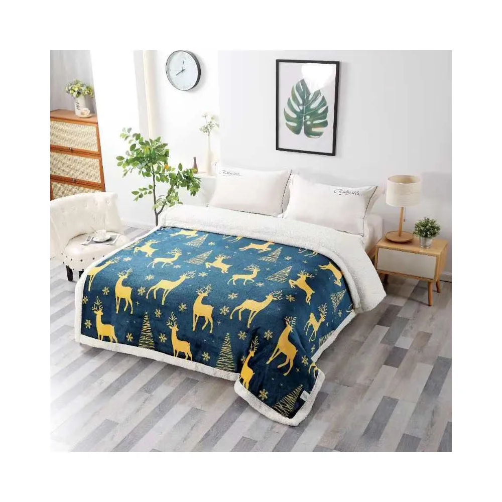 Patura Cocolino cu Blanita, Model de Craciun 200x230, Albastru cu Reni - SUZ27