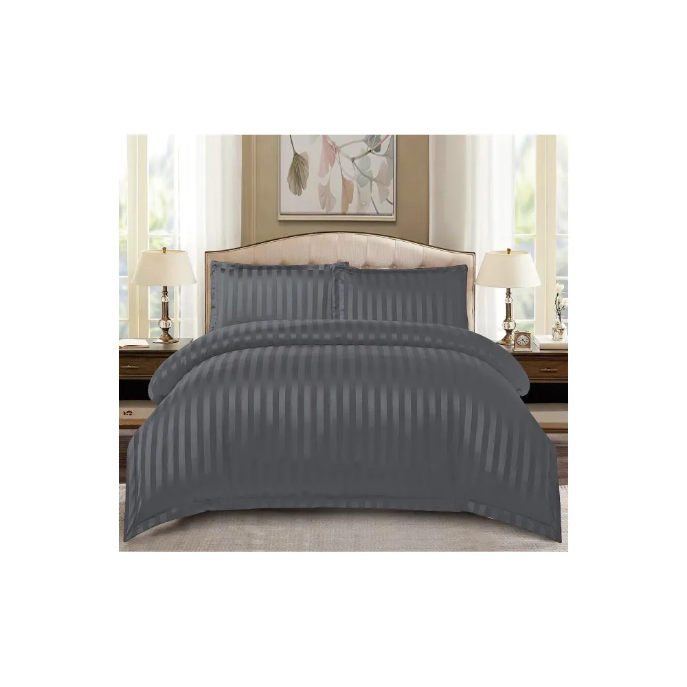 Lenjerie de Pat Dublu Bumbac Damasc 4 Piese cu Elastic, Gri - CPL142