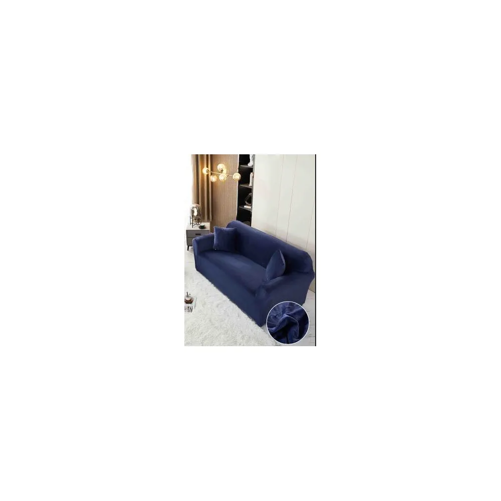 Husa Elastica din Catifea pentru Canapea 3 Locuri + Fata de Perna - JO575 Bleumarin