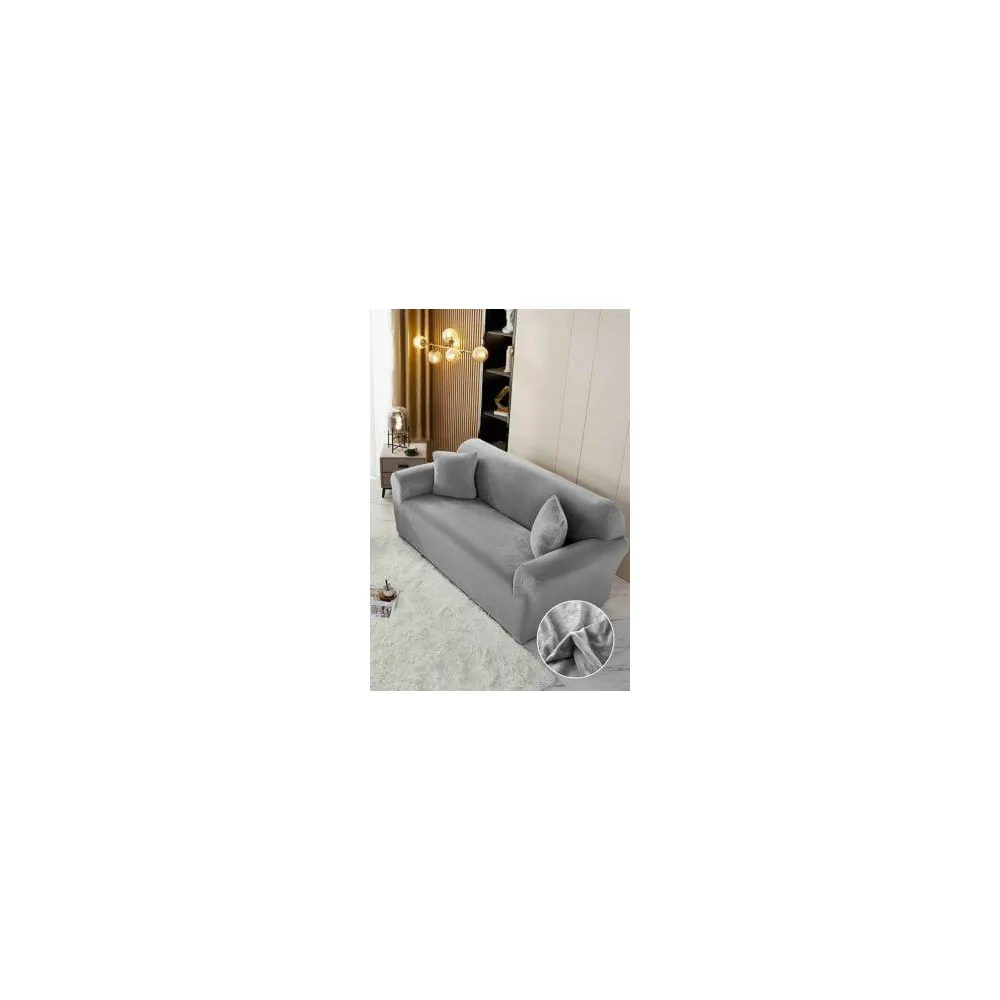 Husa Elastica din Catifea pentru Canapea 3 Locuri + Fata de Perna - JO576 Gri deschis