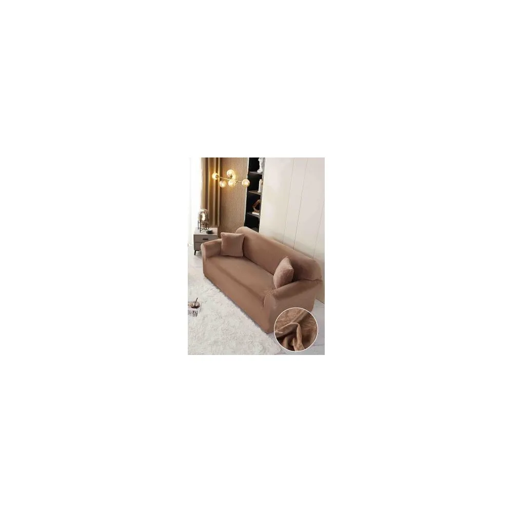 Husa Elastica din Catifea pentru Canapea 3 Locuri + Fata de Perna - JO578 Maro Deschis