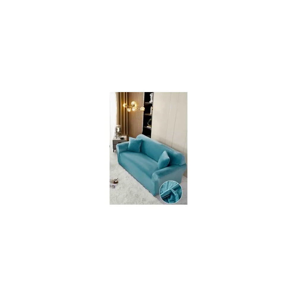 Husa Elastica din Catifea pentru Canapea 3 Locuri + Fata de Perna - JO582 Turcoaz
