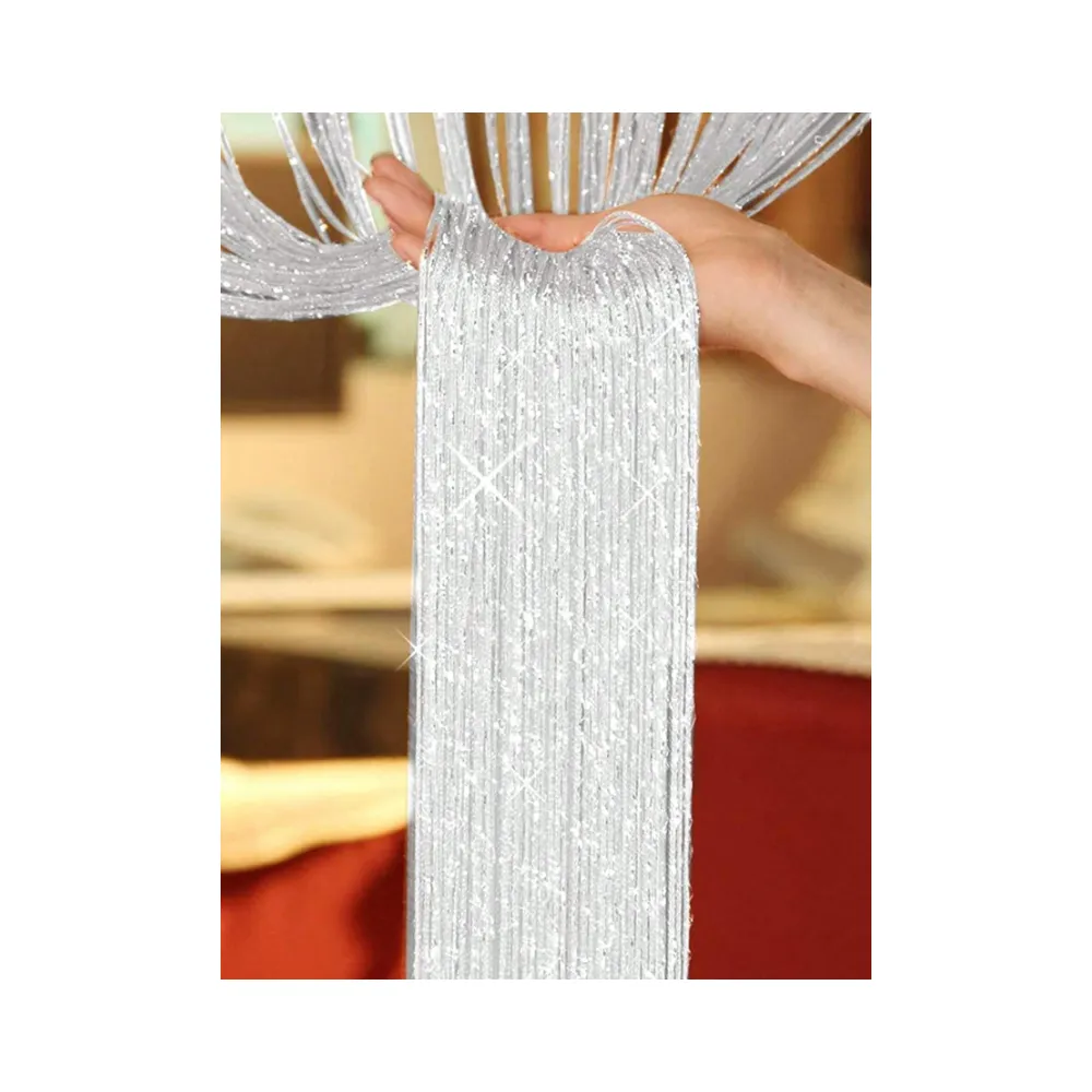 Perdea Franjuri 100 x 200cm - Alb cu Insertii Argintii - 884088
