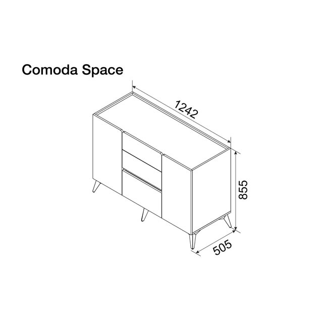 Comodă Space, modernă, PAL melaminat, 4 sertare și 2 dulapuri, 110.2x48x87.3 cm, alb