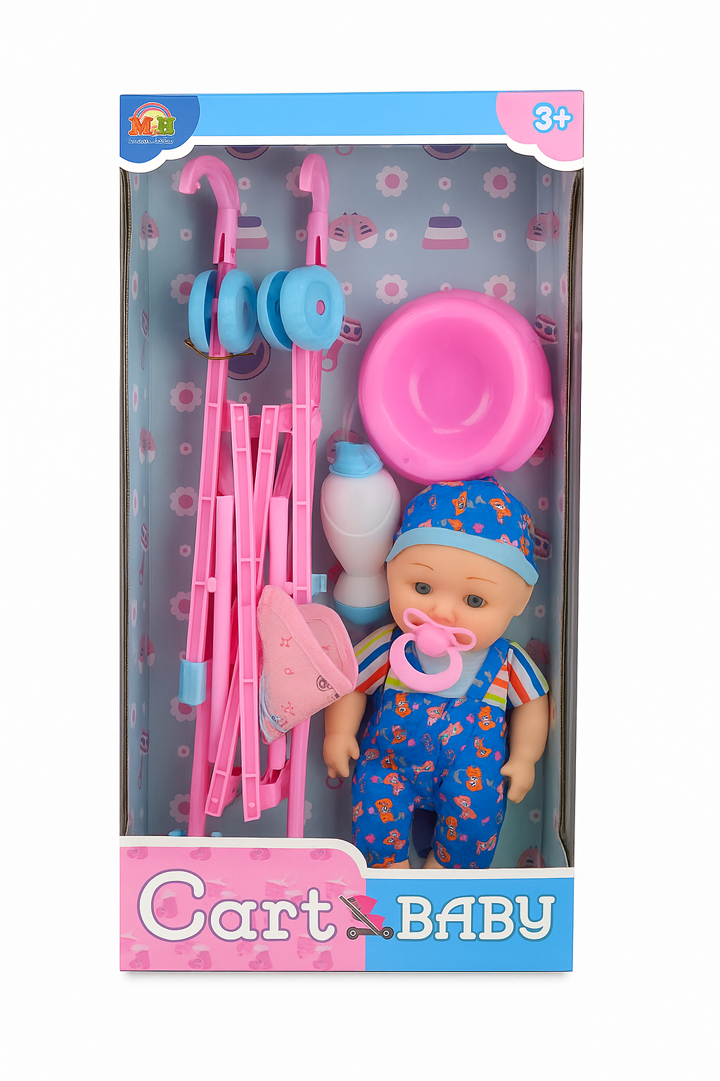 Set jucarie bebelus cu carucior roz - Cart Baby 3+, 47x24cm